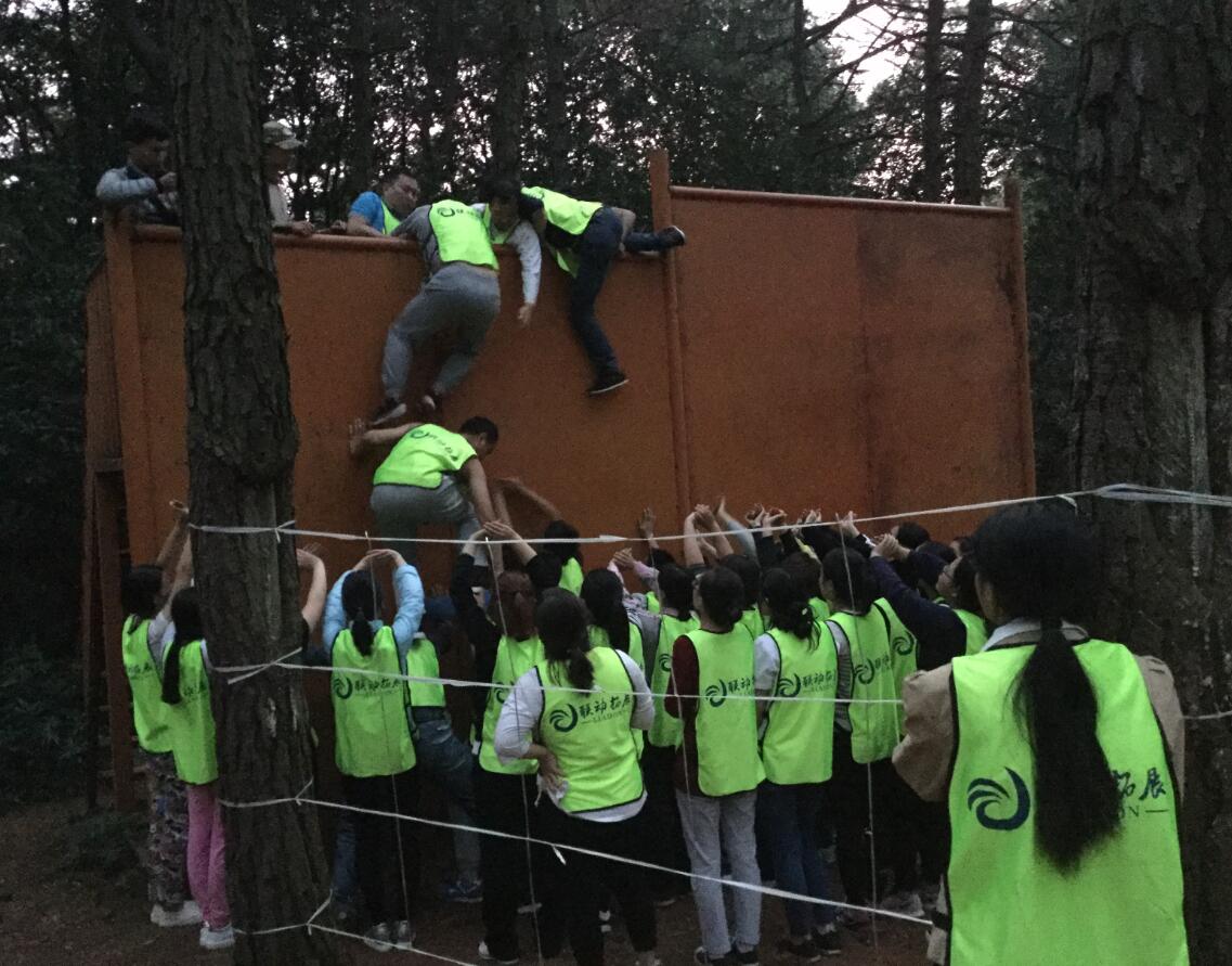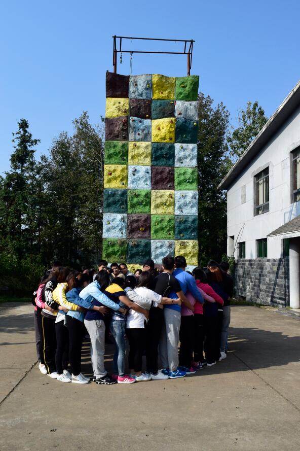 我們在經(jīng)歷了分隊、穿越電網(wǎng)、徒手攀巖、團(tuán)結(jié)協(xié)作三重關(guān)以及合力吹氣球的各種團(tuán)隊挑戰(zhàn)之后迎來了畢業(yè)墻,也就是在團(tuán)隊配合下所有人翻越3.8米高墻。我們整個團(tuán)隊失敗了2次,從頭再來,一共爬了三次,最終花了11分鐘完成了任務(wù),這個環(huán)節(jié)集合了前面所有的核心,有合作,有信任,有付出。在最后一個人被拉上去的時候,畫面被定格,其中包含了所有人的感動、感激,甚至淚水。