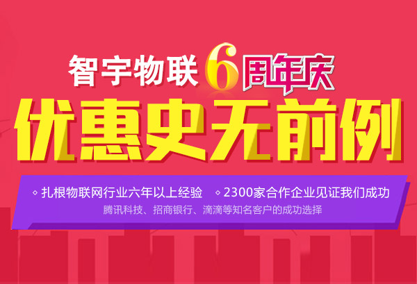 好消息好消息,智宇物聯6周年了, 期間好禮多多,活動不斷!快快咨詢吧!